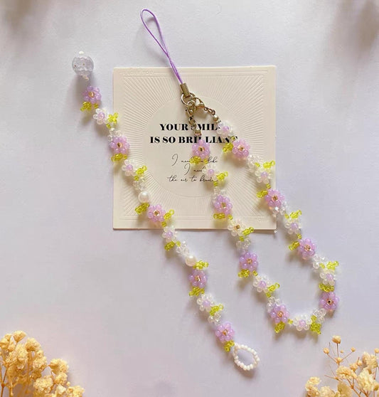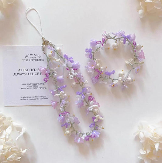 Lavender Seed Bead Phone Strap Bracelet: Handmade Floral Jewelry
